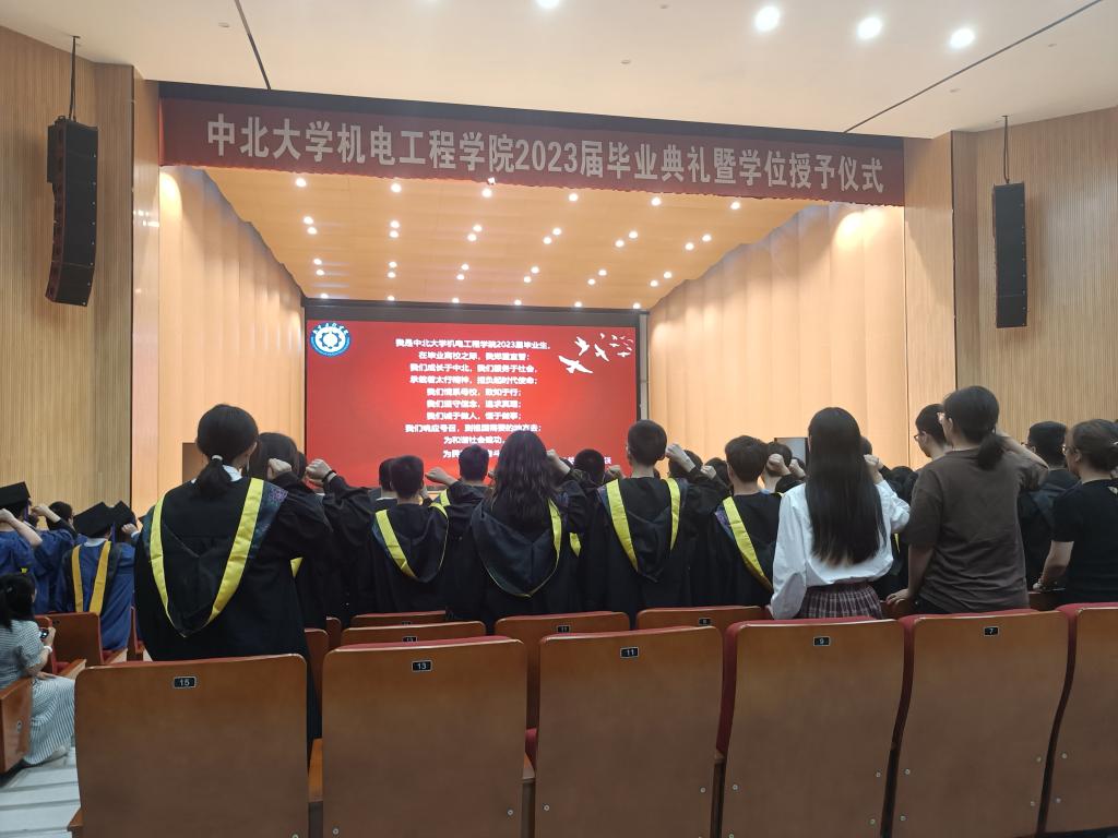 毕业生张强带领在场毕业生宣誓:我是澳门沙金在线平台2023届毕业生,在毕业离校之际,我郑重宣誓:我们成长于中北,我们服务于社会承载着太行精神,担负起时代使命;我们情系母校,致知于行;我们坚守信念,追求真理;我们诚于做人,恒于做事;我们响应号召,到祖国需要的地方去;为和谐社会建功,为民族复兴奋斗!