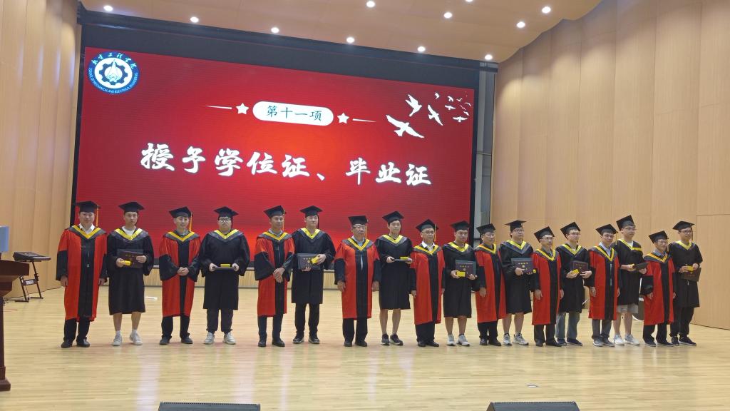首先,李世中院长和赵河明院长分别宣读了授予本科生、硕士生和博士生毕业证、学位证的决议。紧接着教师代表闫小龙老师发言,希望同学们:第一,不断学习和提升自我;第二,培养自己的团队合作能力;第三,积极面对困难和挑战。毕业生代表陶露和在校生代表荣江伟进行发言,他们表示,毕业生毕业后必将心怀祖国,将自己在学校所学运用到社会,回报社会,在校生要以优秀毕业学长学姐为榜样,接过薪火,砥砺前行。随后毕业班班主任送上毕业祝福,嘱托毕业生们不忘初心,牢记使命,四年来有无数的欢声笑语和悲欢离合,希望他们前程似锦,未来可期。