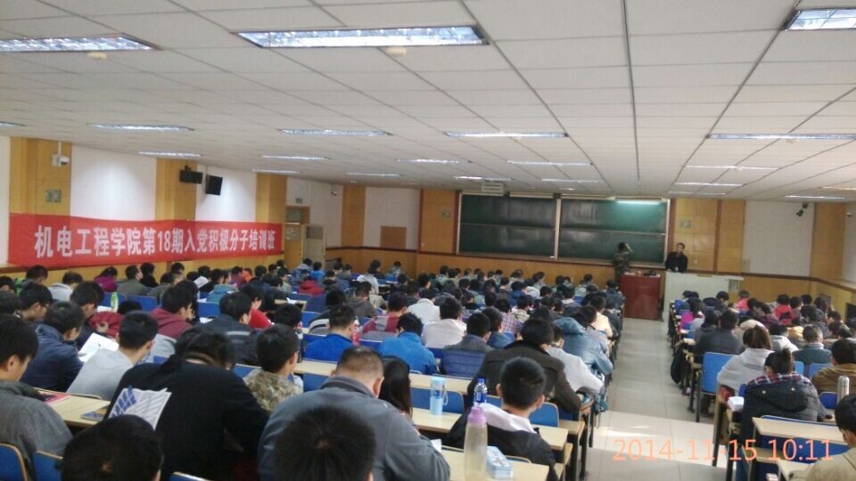 2014年11月15日,我院于中午10点在九号楼202教室进行了第十八期的党课培训。在这次的培训中,我们有幸邀请到了计算机控制与工程学院党委书记郭书杰,为同学们进行了一次十分有教育意义的党课培训。
